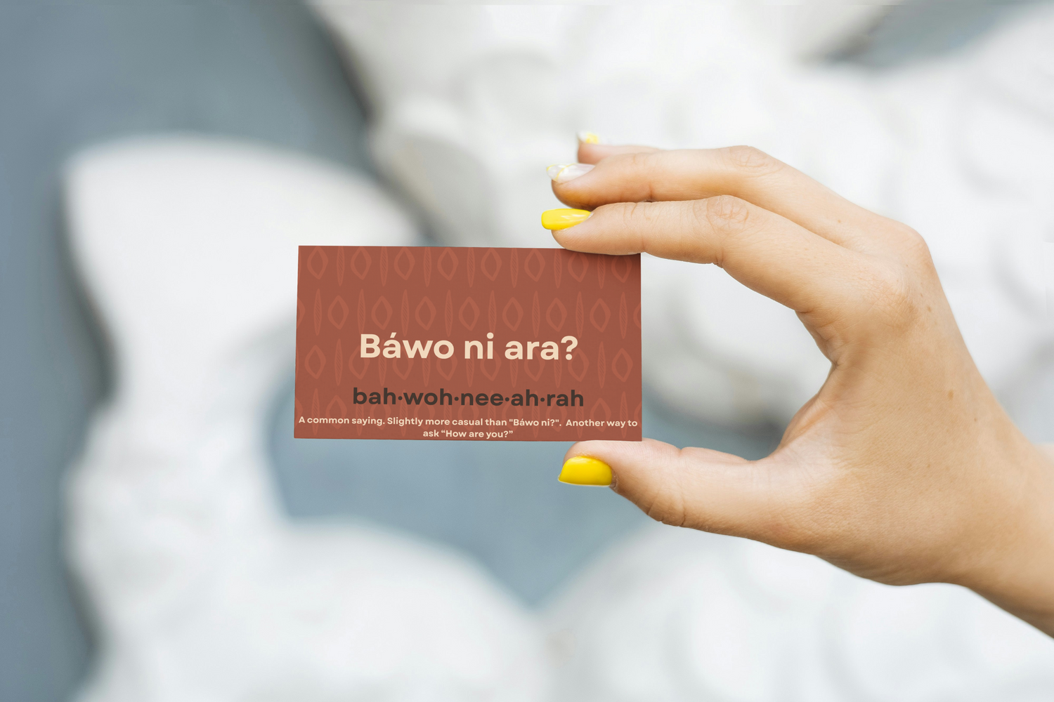 Beautiful flashcards and guided audio that make everyday Yorùbá feel natural and fun.