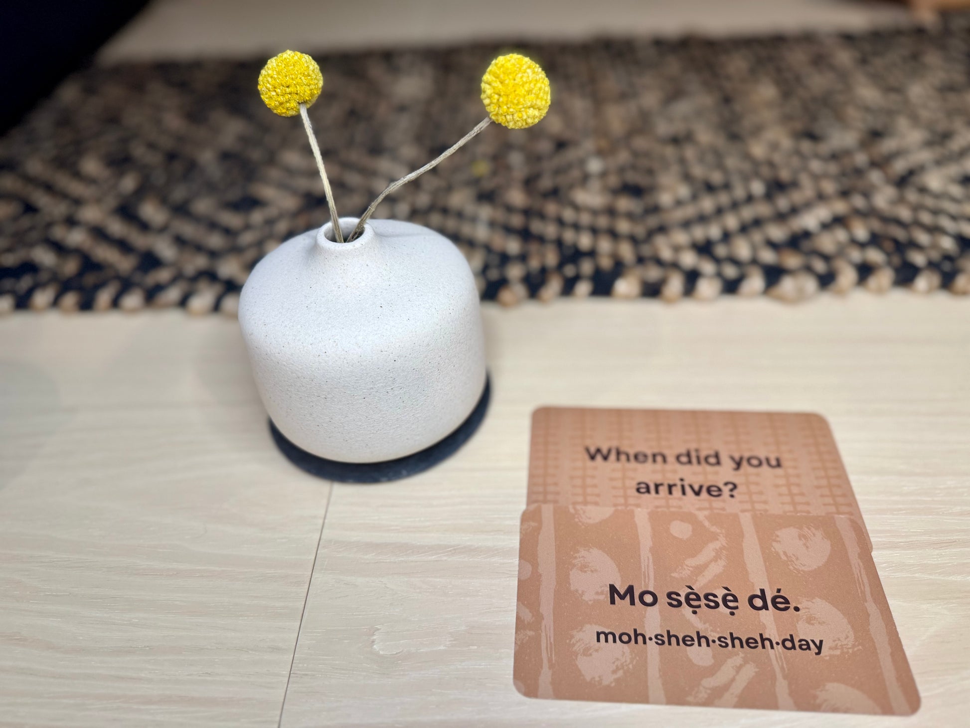 See it on the card, hear it in your ear, say it in real life. The Ajíire bundle pairs our Volume 1 flashcard deck with the Audio Guide so you build confidence faster—one small win a day.